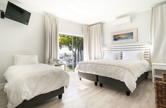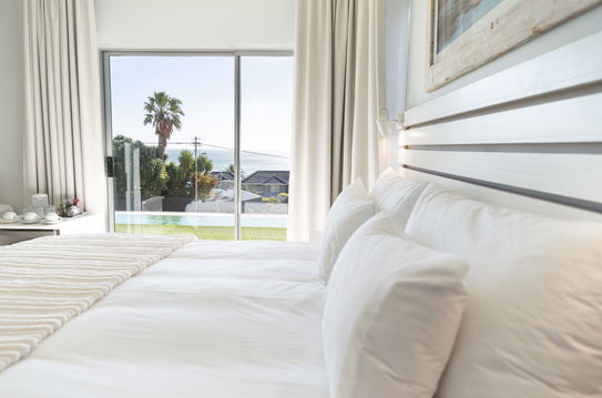 The room offers sliding doors that open directly onto the sparkling pool area. From here, you can take in uninterrupted views of the Atlantic Ocean and enjoy the soft sea breeze drifting in. It’s the perfect spot to lounge by the water, take a refreshing dip, or simply relax while watching the ocean shimmer in the sunlight.
